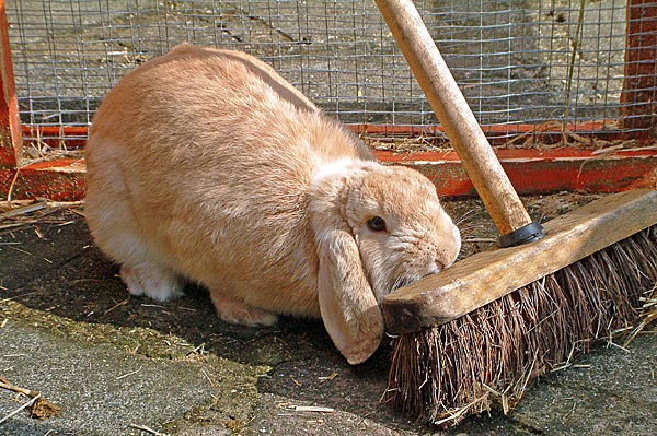 Barely decides to help me clean out his hutch, but I don't think he's quite got the hang of using the broom!